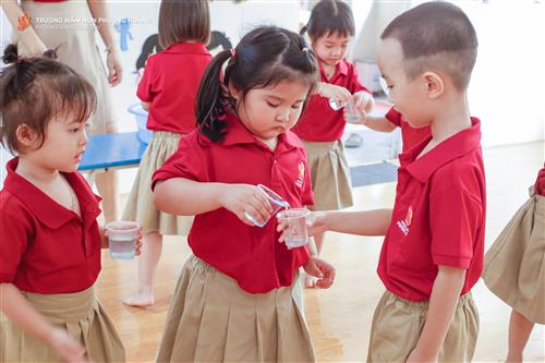 Tiết học: Đo dung tích chai nước - Lớp Mầm