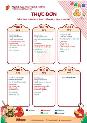 Thực đơn Tuần 2 tháng 12, từ ngày 08 tháng 12 đến ngày 13 tháng 12