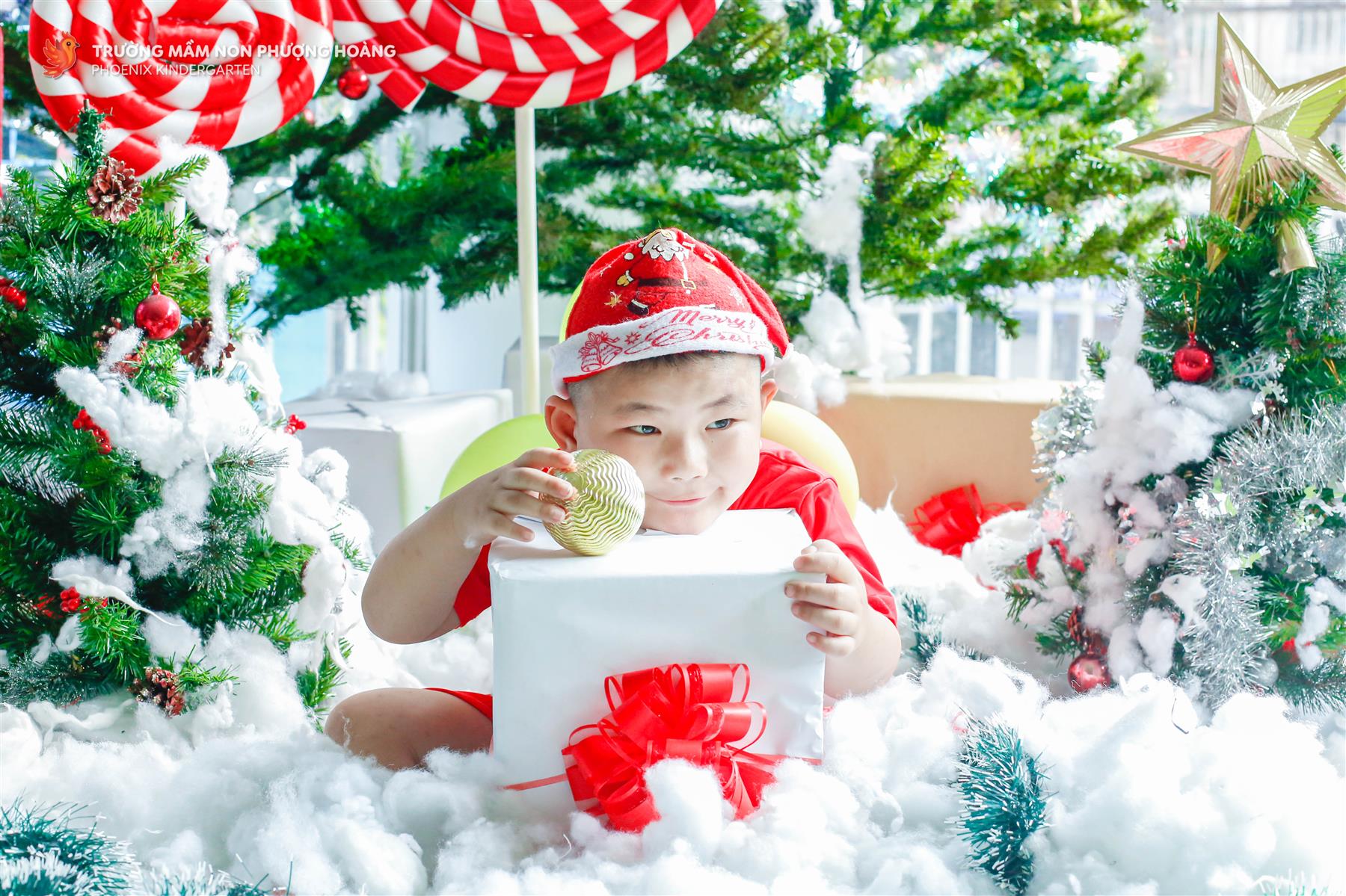 Trong không gian Giáng sinh ấm áp và lung linh sắc màu, các bé tham gia hoạt động chụp hình Noel với niềm vui rạng rỡ hiện rõ trên từng ánh mắt, nụ cười.